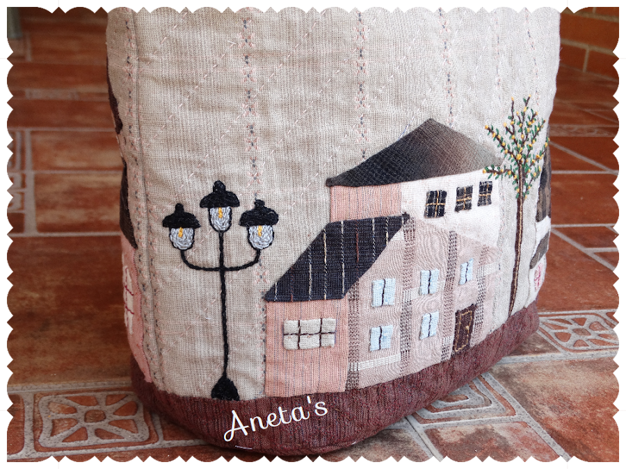 Es este precioso bolso de casitas, él fue el culpable de que por fin me decidiera a meterme en clases de patchwork.