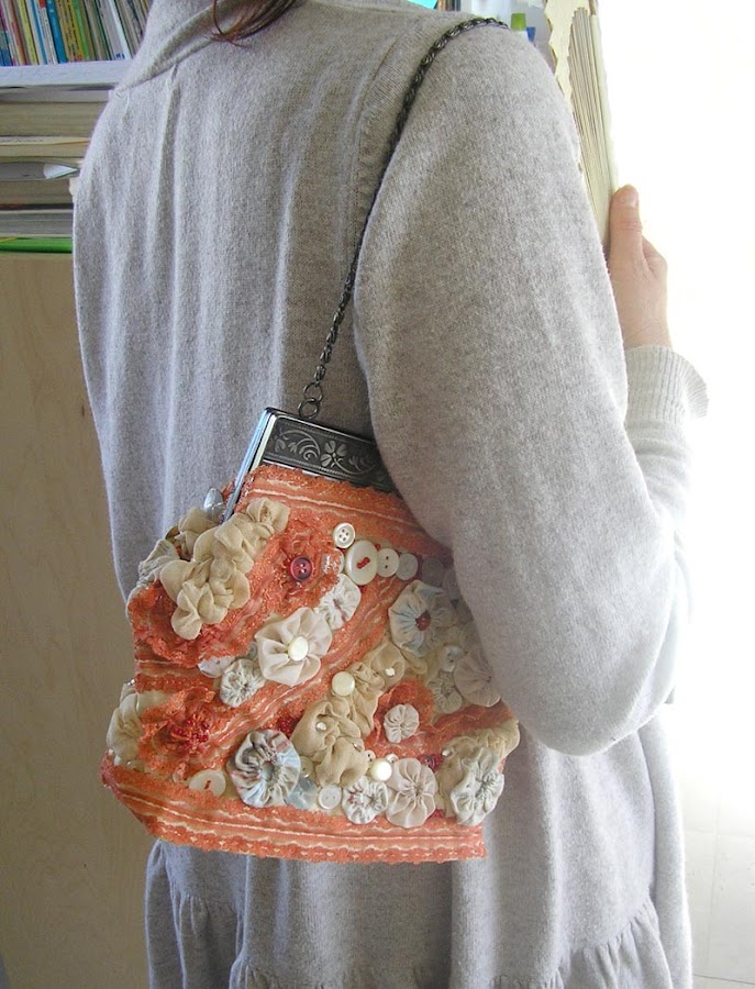 Se trata de ir cosiendo cositas, botones, avalorios, puntillas y demás zarandajas, para ello paciencia y tranquilidad, creo que el cierre que me agencié le queda de perlas.