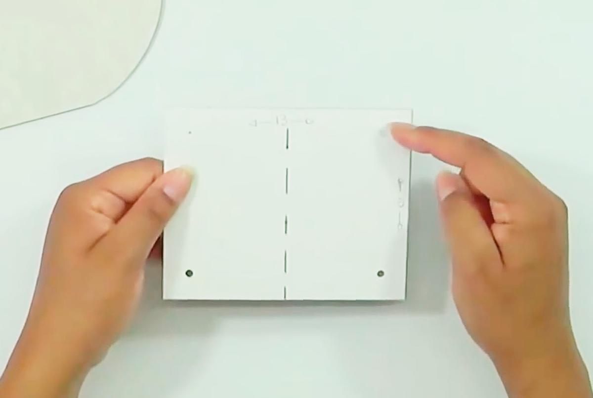 Pegar la base de cartón piedra en una de las piezas largas, previamente marcada en el centro, guíate por las líneas y centrar.