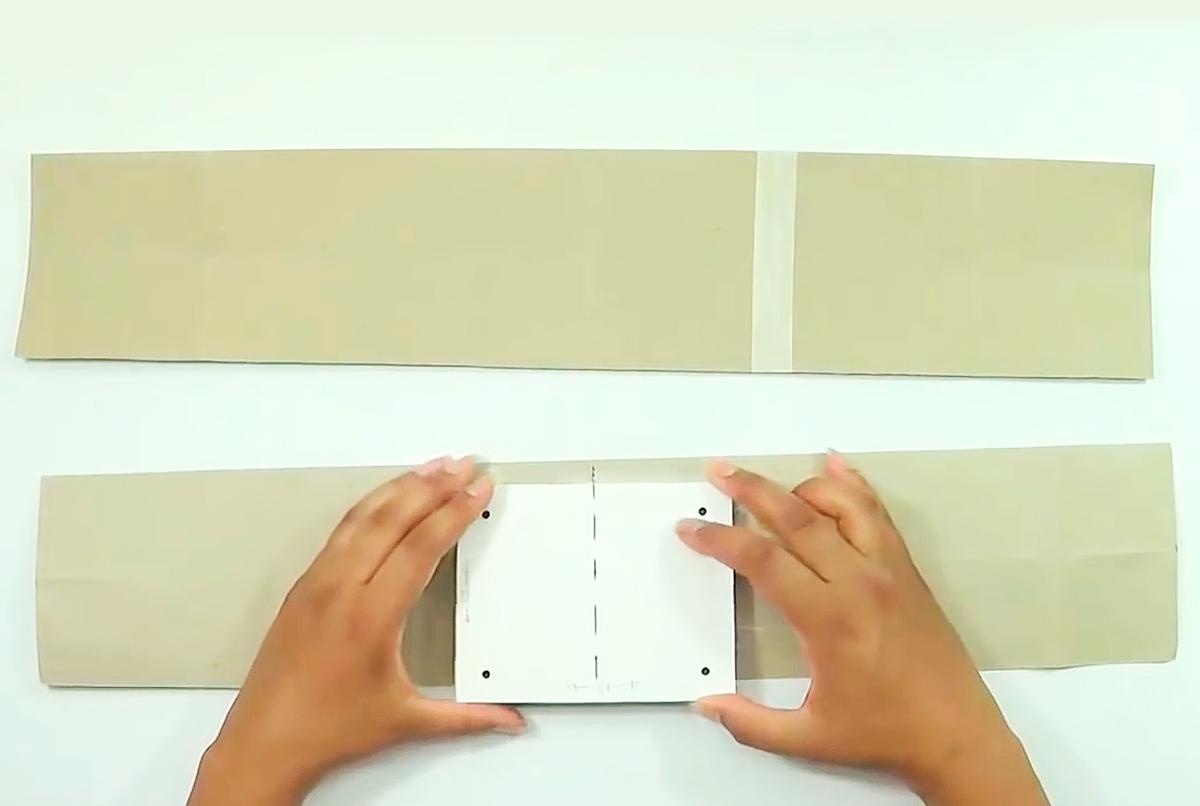 Cortar 2 piezas de cartulina o papel kraft de 57,5 x 10 cm.