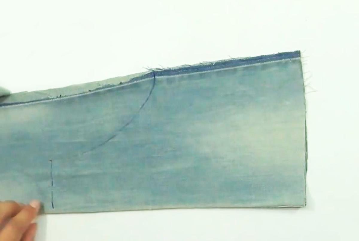 Pon la pieza de jeans con el revés hacia afuera y el forro con el derecho hacia afuera.