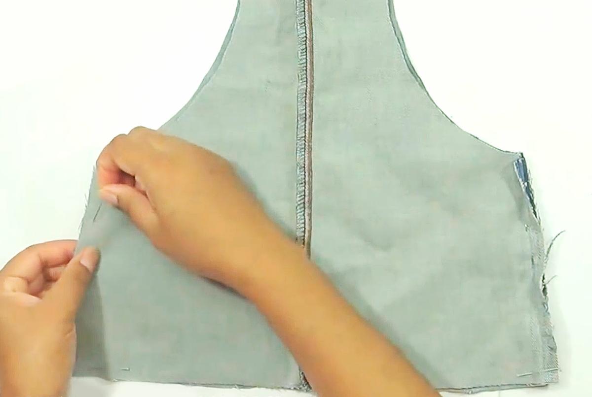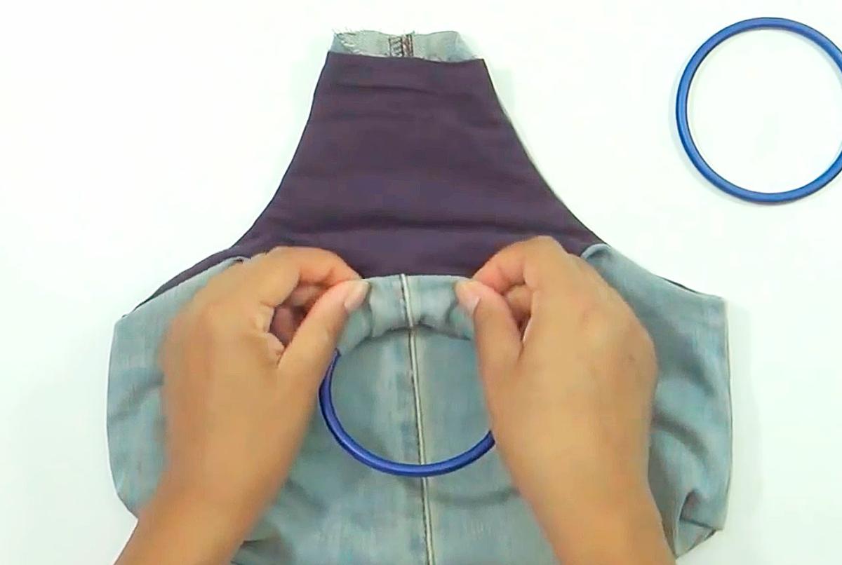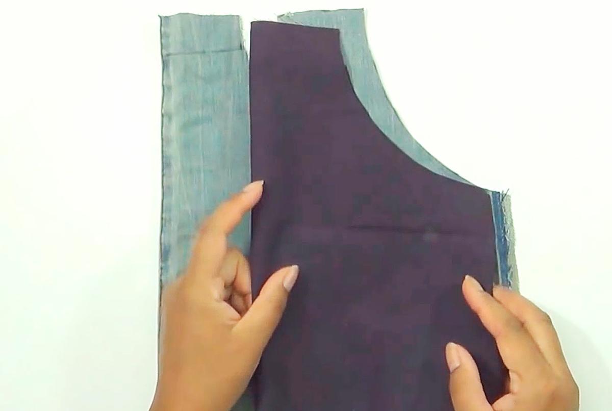 Mete el forro dentro de la pieza de jeans.