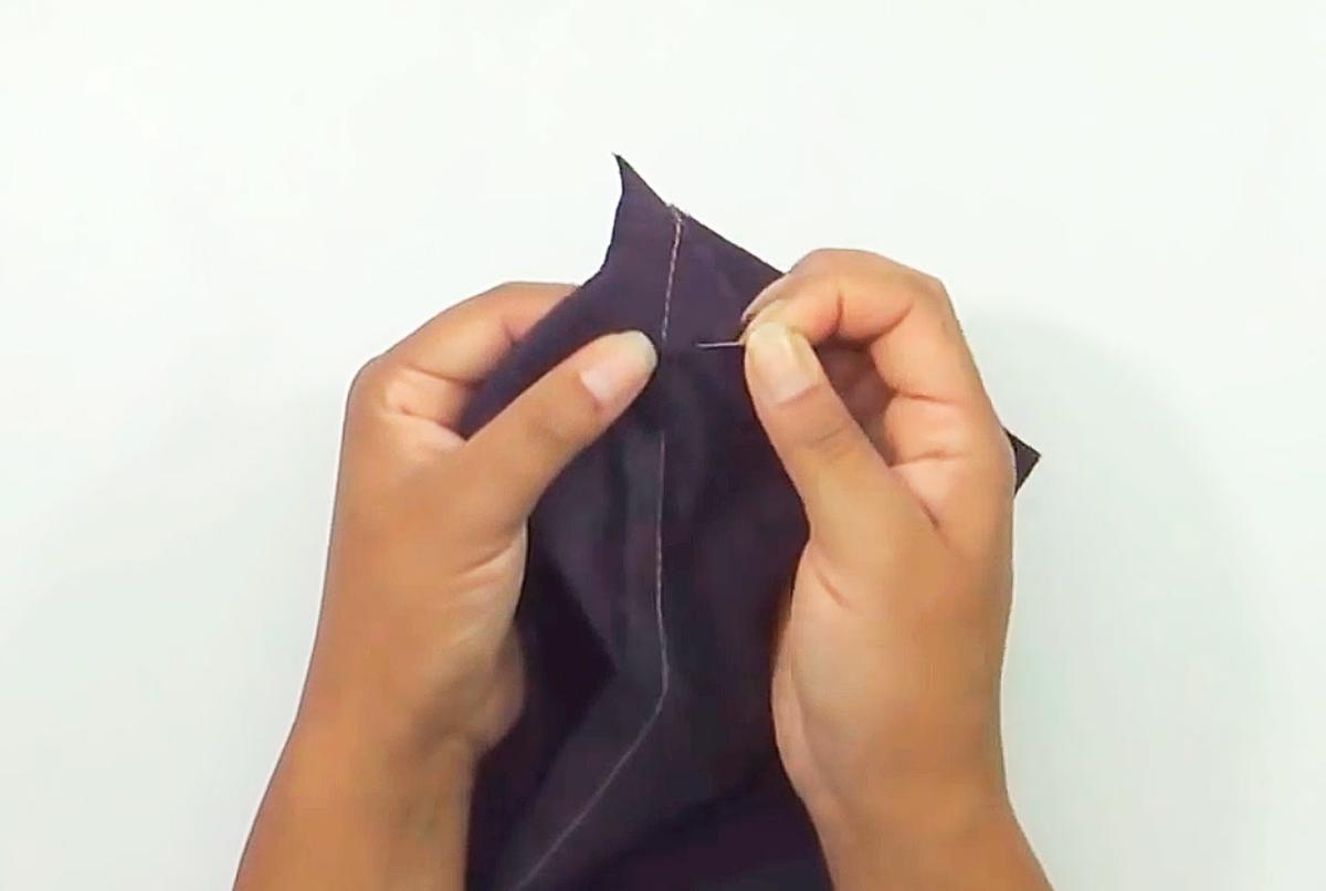 Cose 2 cm de las esquinas en las dos piezas, alineando la costura de la base, con la costura de cada lateral correspondiente.