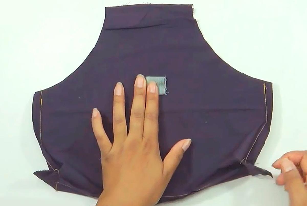 Corta 2 piezas de tela jeans y 2 piezas de tela para el forro, con las medidas anteriores.