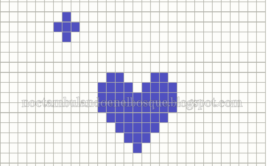 - En la vuelta 9 nos tocará seguir con el dibujo. Recordad de hacer 1 pb en un punto bobble y otro. Aquí abajo os dejo el gráfico del corazón completo y del adorno de arriba.