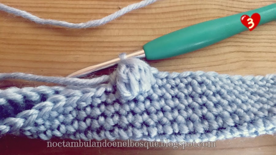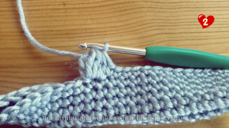 Como véis, he utilizado para el corazón el punto bobble, ya que últimamente me ha dado por ahí y me encanta cómo crea textura y relieve a los tejidos, me parece súper divertido. Que yo sepa, se puede hacer de dos formas diferentes, pero hoy vamos a ver una de ellas.