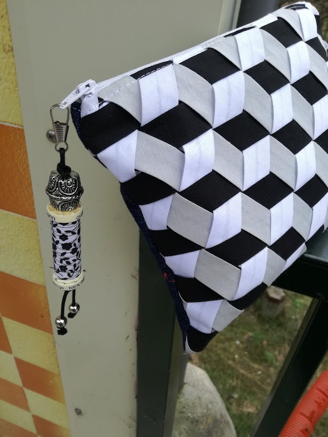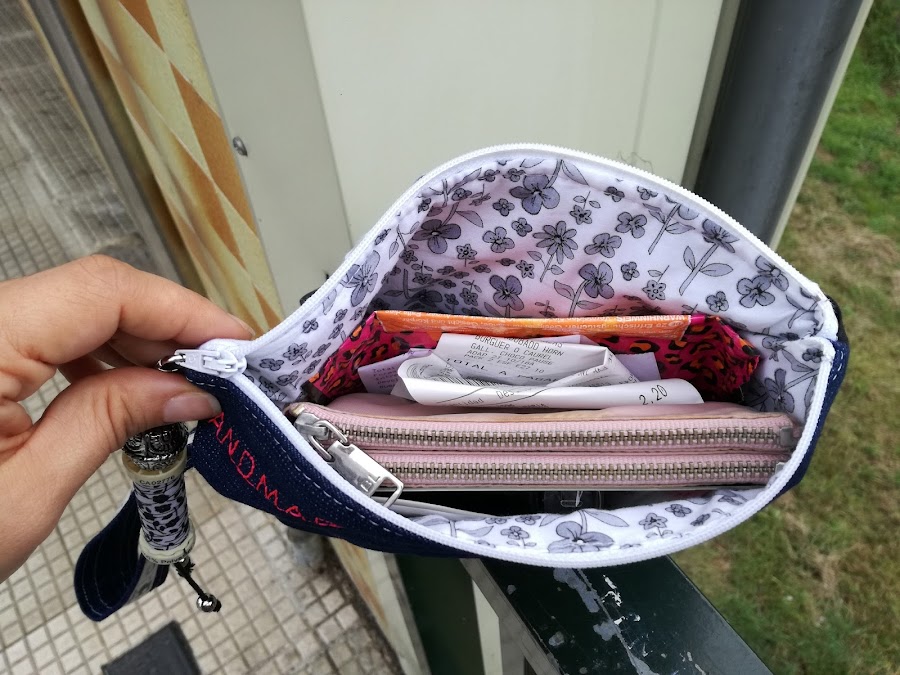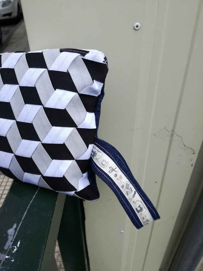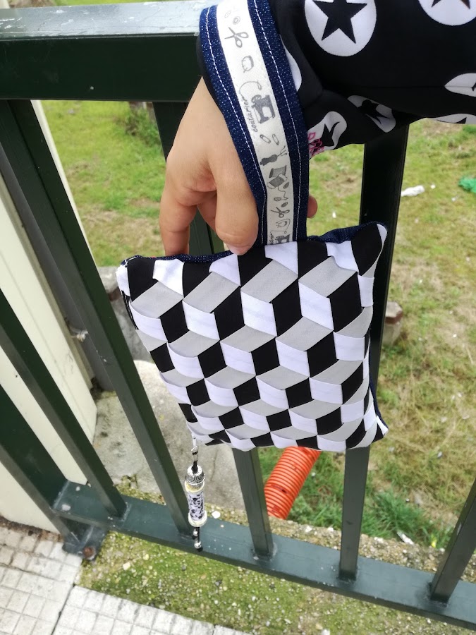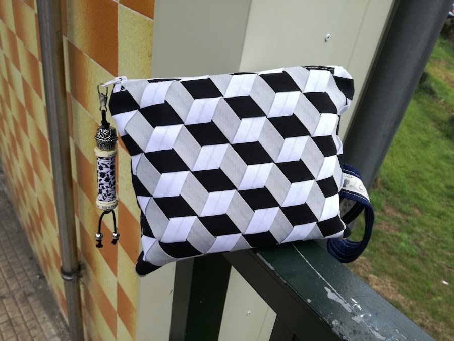 Un día decidí unirlos, un poco a la carrera, ponerle un asa, decorar la cremallera.... Sin darme cuenta cosí un pequeño bolos de mano que acabé usando a diario.