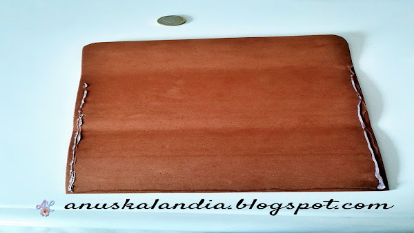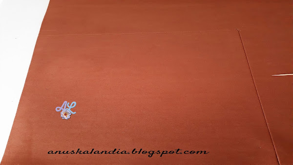 2.- Doblamos como se ve en la foto, para ver que tamaño le queremos dar al bolso y hasta donde queremos que llegue la lengüeta delantera. En mi caso los dobleces están a 9 cm. y 20 cm.