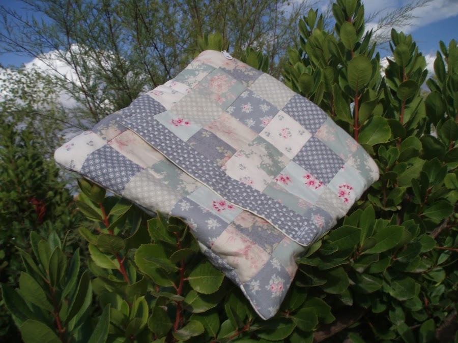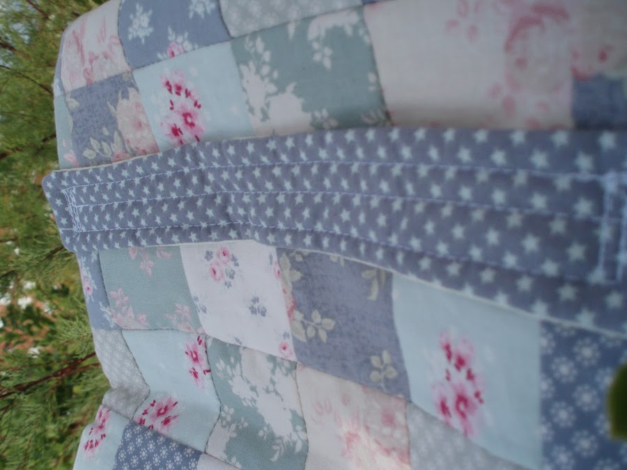 El patrón son simplemente dos rectangulos de cuadros de tela unidos. una vez cosidos, a uno de ellos le añadí el pasamanos. Solo son dos tiras de tela cosidas del revés y una vez dadas la vuelta las cosí con costuras paralelas para darle más cuerpo.
