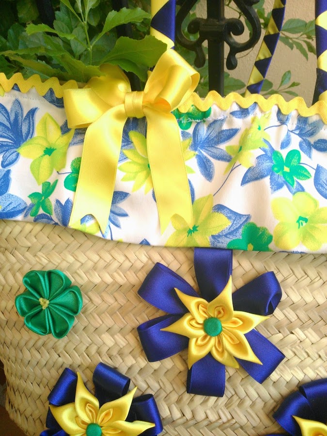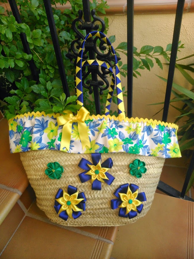 BOLSO DE MIMBRE MODELO FLORES AMARILLAS
