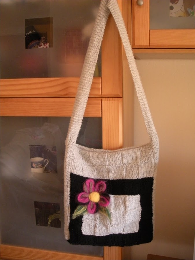 Este bolso es ideal para el tiempo en el que estamos, de lana, calentito con su flor que me regaló mi amiga Mariangeles, vamos para ir a la moda jajajjaja. Diseño propio tal y como lo iba viendo venir.