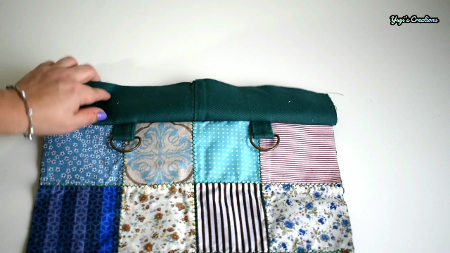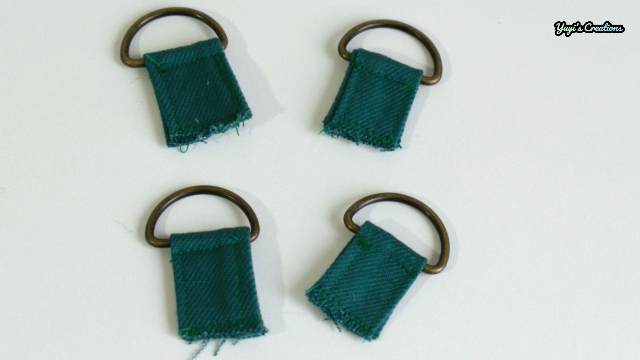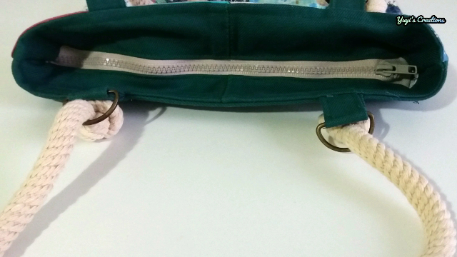 Por último, colocamos las asas. Lo bueno de colocarle estas argollas es que podemos usar las asas que más nos gusten. Podemos usar unas asas fijas hechas con la misma tela, podemos usar unas asas con hebillas tipo langosta, o como las voy a usar yo (asas de cordón de algodón).