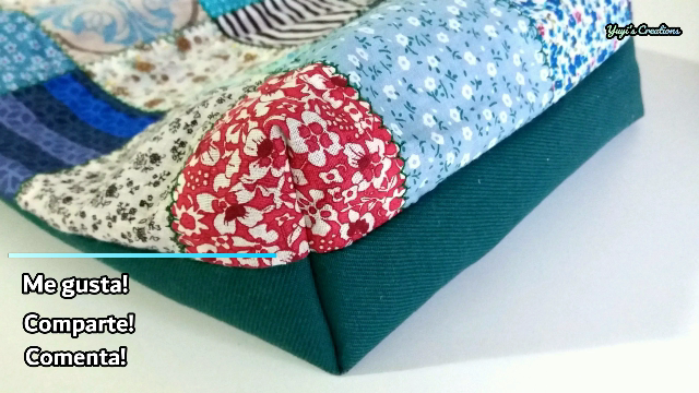 También le pasamos un zigzag por todo el borde para asegurarnos que no se deshilache y luego hacemos la base del bolso. Para ello vamos a ubicar las esquinas, haciendo coincidir las costuras de delante con la queda detrás, de esta manera: