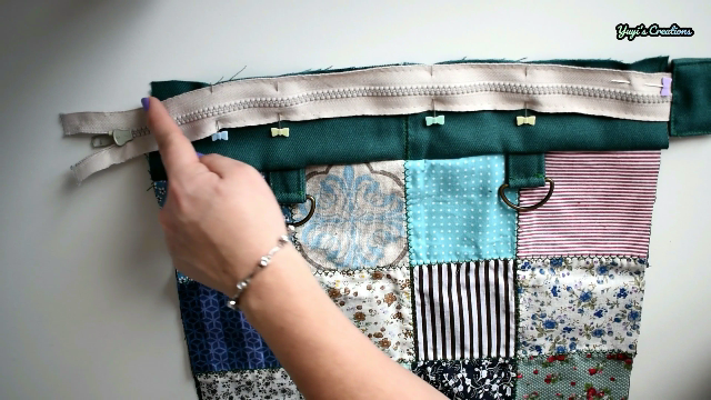 Con la pieza trasera hice lo mismo, coloqué las hebillas y la pieza donde va la cremallera, asegurando que queden a la misma altura y distancia.
