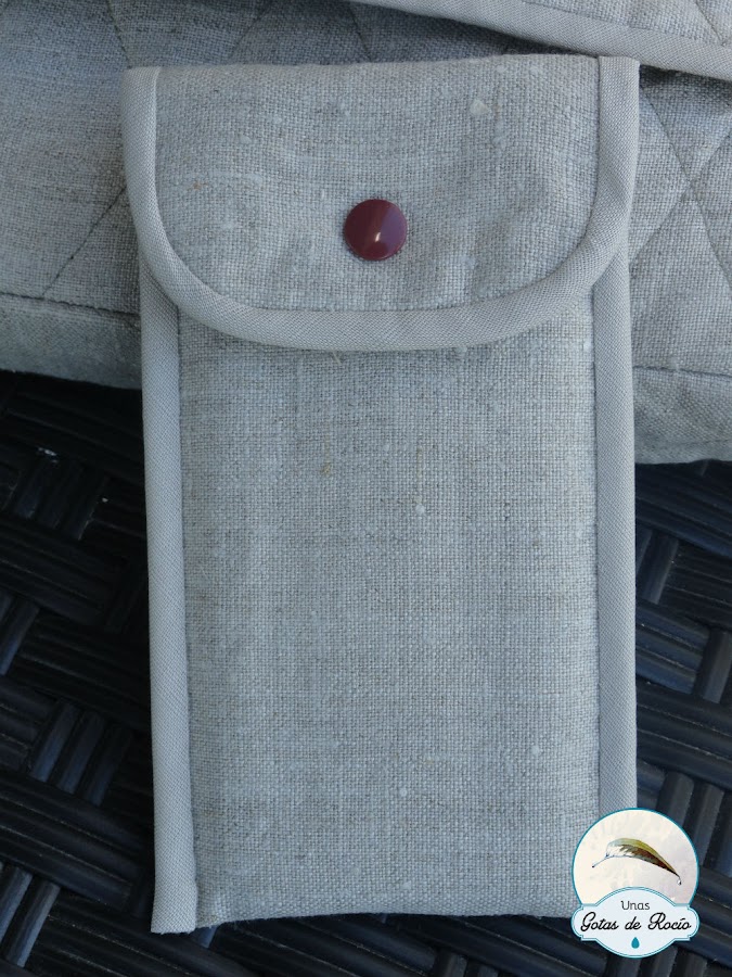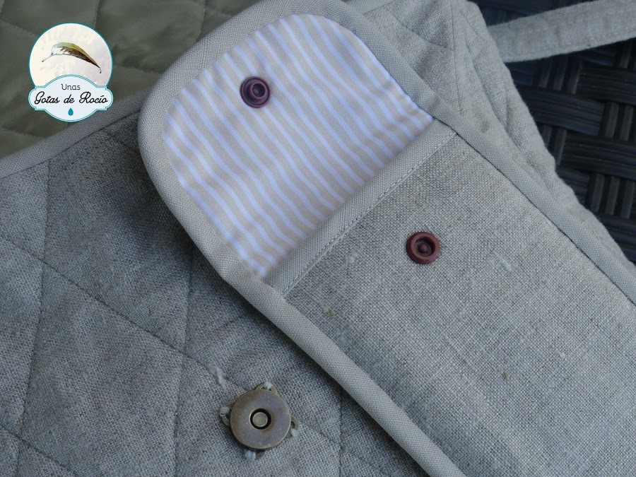 En los cierres, snap para la funda de móvil e imán para el bolso. pero de los que se cosen. Siendo el bolso acolchado facilita mucho la tarea poderlo coser con posterioridad. Es curioso cómo cambia la apreciación de lo bonito y lo feo. Hace no demasiado, los cierres de imán cosidos me parecían feísimos frente a los que se insertan. Ahora todo lo contrario. Pero todo lo contrario....