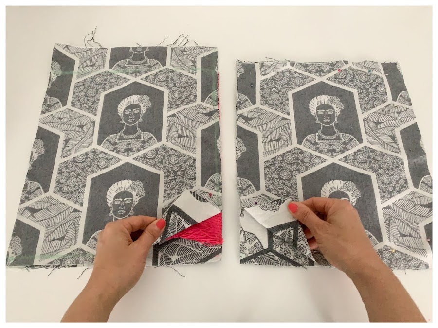 Tendremos ya las dos piezas que formarán el bolso, que coseremos por los tres lados, dejando el