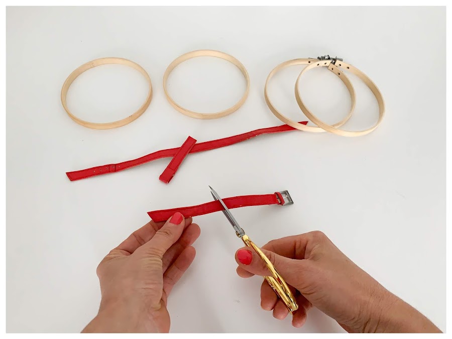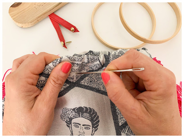 Colocar las asas, que las haremos con dos bastidores de bordar, pequeños redondos, esos que tanto