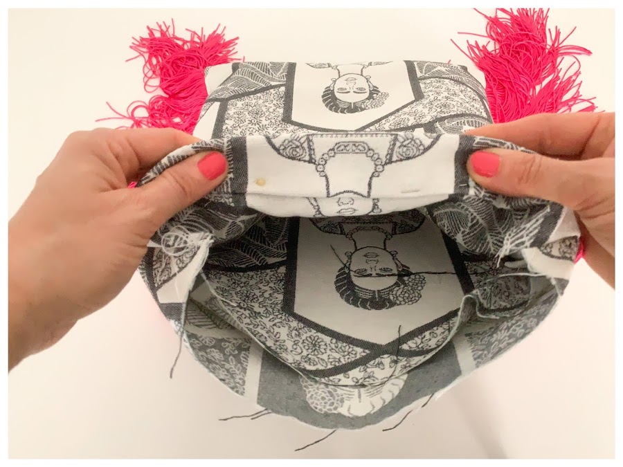 Darle la vuelta para quedar el derecho de la parte exterior del bolso hacia afuera, de la