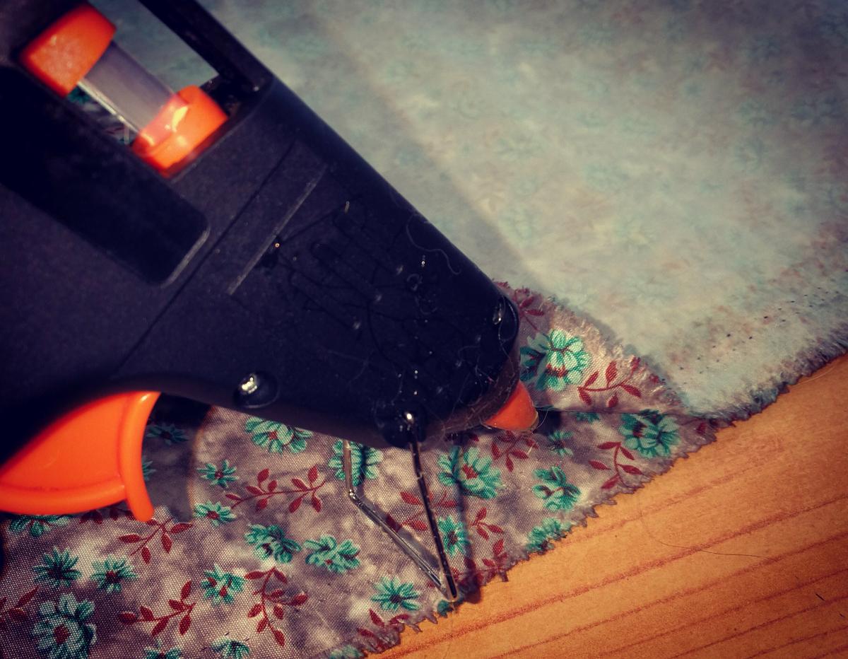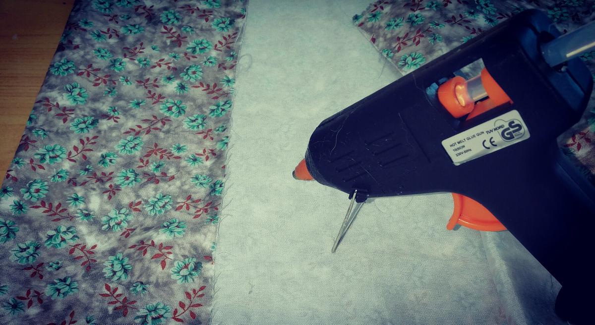 Hoy vamos a hacer un bolso, y como siempre, utilizaremos materiales que tengamos por casa. Solo necesitaréis un trozo de tela, rectangular y del tamaño que queráis para vuestro bolso, y una pistola de silicona caliente. Antes de empezar, comprobad que este bien caliente.