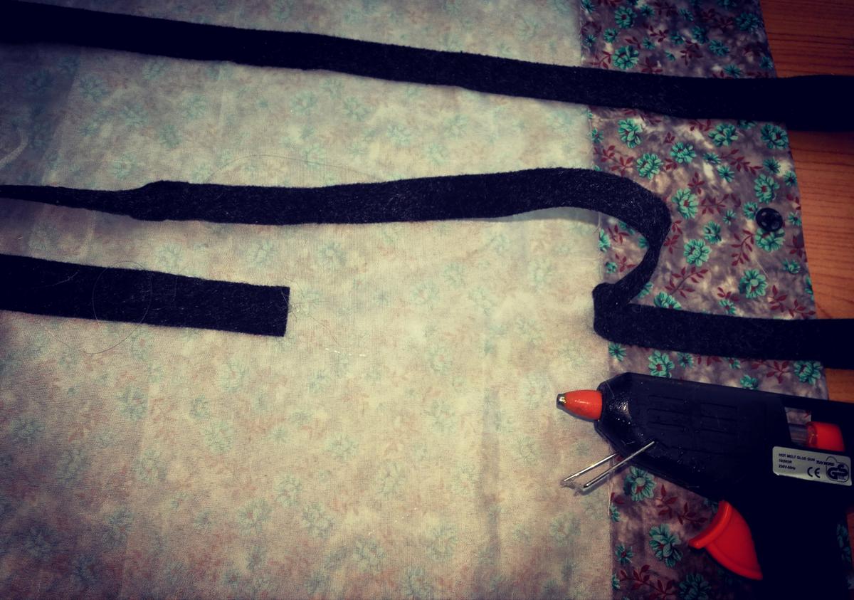 Ada’s DIY bag Cogemos la tela, Le damos la vuelta y la doblamos por la mitad. Simplemente tenemos que ir poniendo la silicona en línea recta y presionar con los dedos, hay que hacerlo rápido porque la silicona se seca muy rápido.