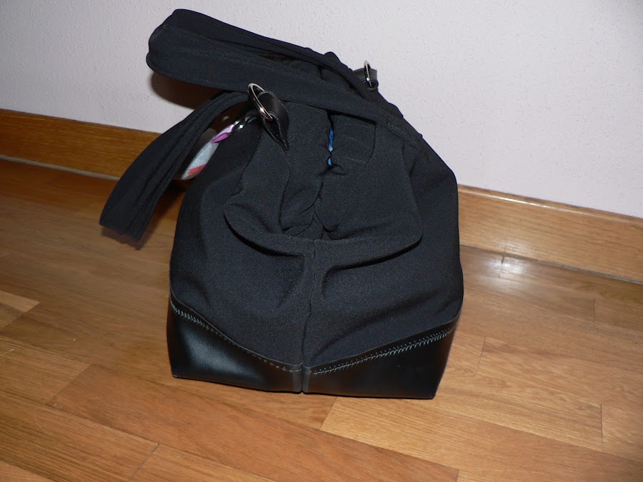 Y he de reconocer que me lo estoy poniendo casi a diario.... hasta me cuesta cambiar de bolso. Me resulta cómodo, no pesa nada, tiene la cabida justa y el cierre de boquilla es de lo más práctico. Como modificaciones exteriores, he omitido la tira que cierra por encima porque no me parecía lo más práctico para mi. Y le añadí dos asas medias que el bolso no traía para poder usarlo en el hombro.