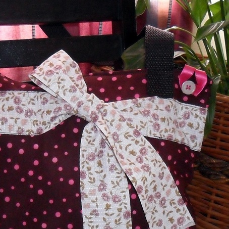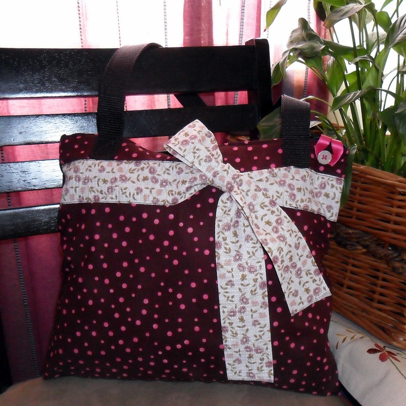 El Bolso Dulzura tiene un tamaño medio ideal para salir de compras, de paseo se puede utilizar en multiples ocasiones. Esta confeccionado en tela 100% algodón de color chocolate con lunares fucsia, ti ...