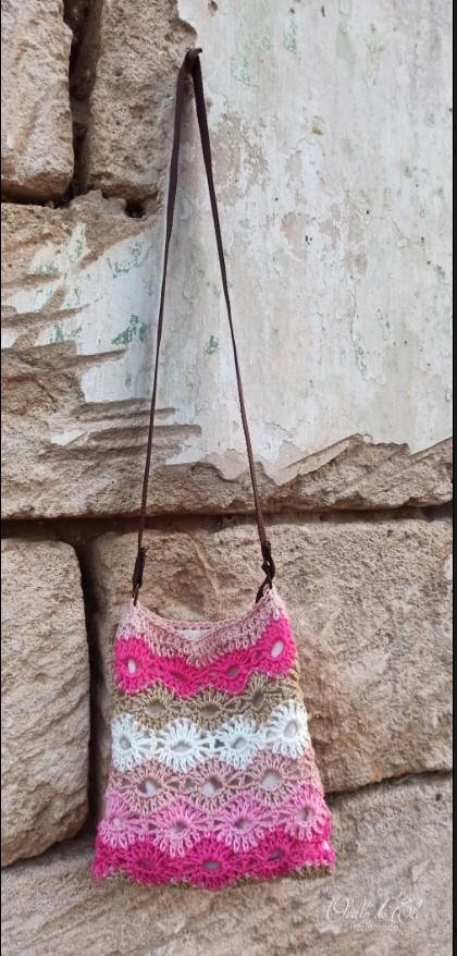 Me encanta diseñar bolsos pequeños y este no ha sido la excepción, en esta ocasión el asa es de nylon en tonalidad a contraste a los colores del bolso a fin de obtener un toque otoñal y alegre.