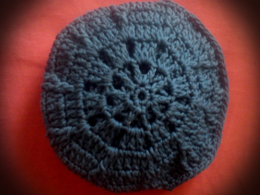 Aquí abajo veis cómo es plegado, un simple monedero redondo de ganchillo y cuando lo abrimos.....