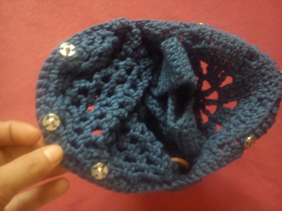 ¿Y por qué lo llamo bolso escondido azul? Porque se puede plegar dentro de un monedero y abrirlo , desplegándolo cuando necesitemos un bolso.