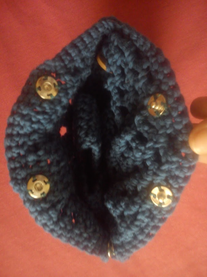 El culillo del bolso es el monedero. ¿Lo ves? Una vez sacado tienes que darle la vuelta como un calcetín al bolso para que los corchetes y la abertura queden hacia dentro.