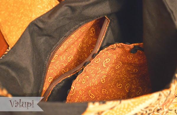 El interior lo hicimos en negro, pero quisimos darle un poquito de color utilizando otra tela de colores similares a los del pareo en los bolsillos.
