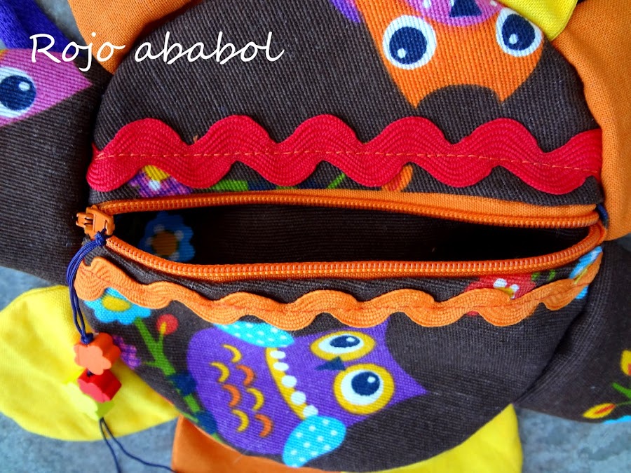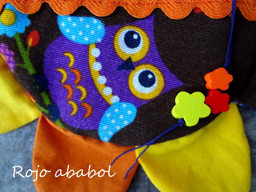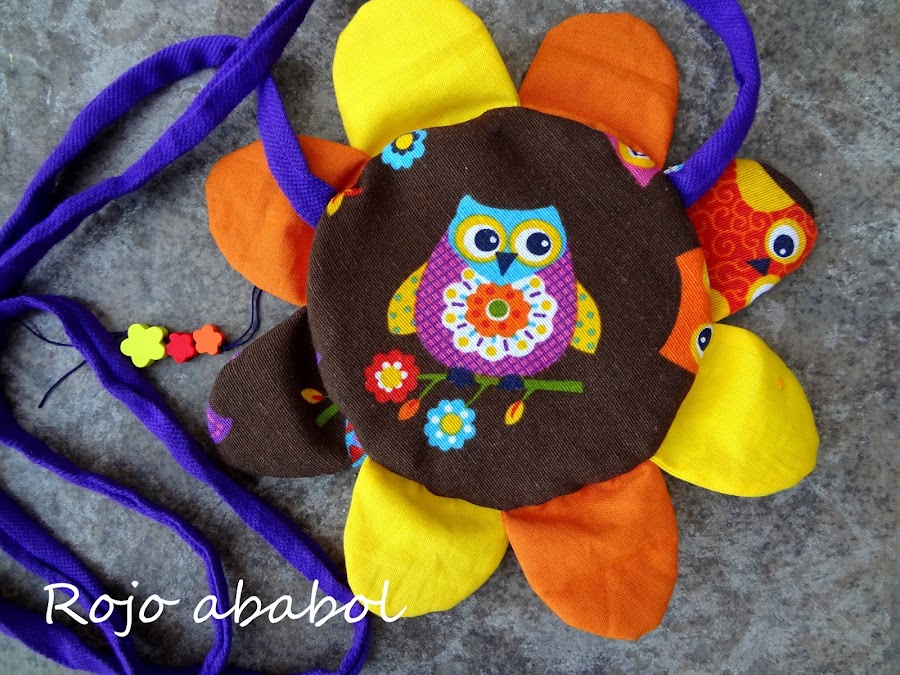 Este fue para la nena mayor de la casa. Elegí una loneta de búhos, la misma que usé para esta mochila combinada con distintos colores de algodón liso para los pétalos.