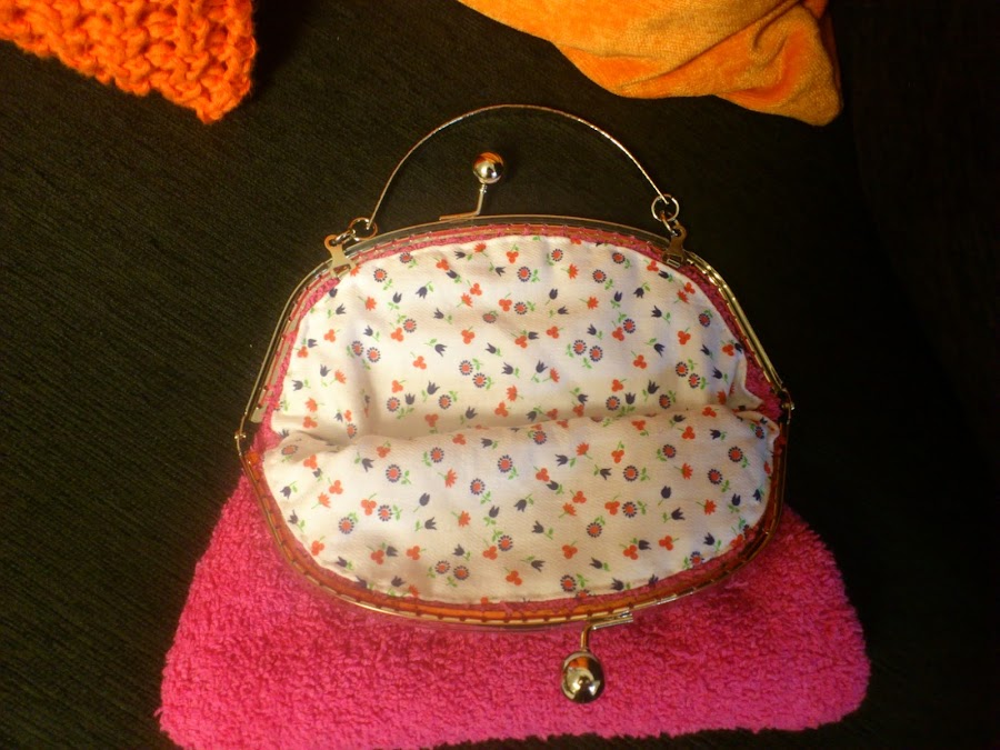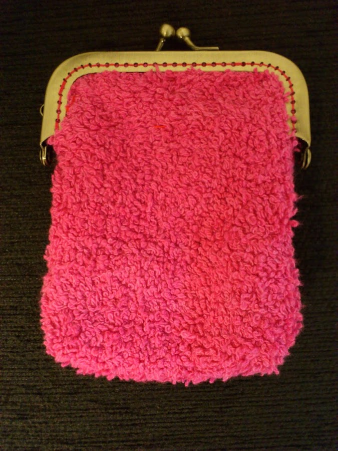 Ahora estoy pensando en buscar tela de rizo de colores vivos para hacer bolsos de boquilla de varios colores. Ahora solo le falta un pequeño adorno que ya veré qué le pongo. Ya de paso, como tengo tela más que de sobra hice un pequeño monedero.