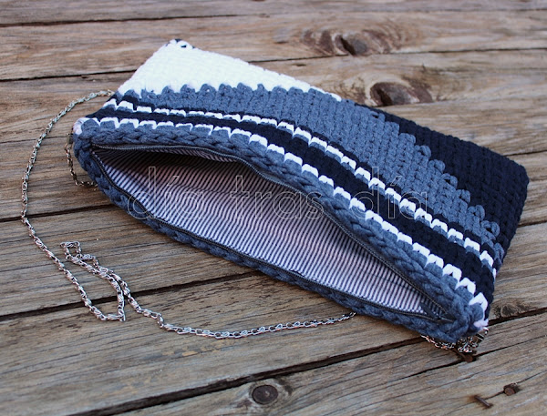 Hoy voy a comenzar con el regalo que recibió mi cuñada Susana. Otros años para ella, que es bastante friolera, he preparado alguna que otra prenda de abrigo, como esta que os enseñé aquí. Pero este año me apetecía no ser tan monotemática con ella y se me ocurrió hacerle un bolso de trapillo, con un estampado geométrico muy elegante, a partir del patrón del clutch tricolor de Santa Pazienzia.