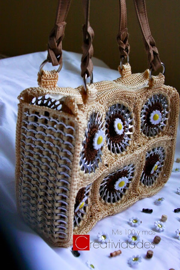 Hola amigos. Justamente hace dos años realicé un hermoso bolso con anillas de aluminio, el cual me ha encantado. Al momento de elaborar este bolso con anillas de aluminio podrás combinar tus colores f ...
