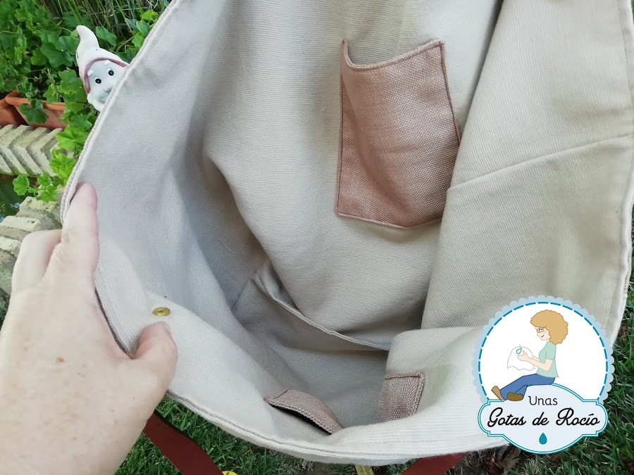 Como veis es un trabajo de ejecución sencilla, sin grandes complejidades técnicas, pero que nos ha tenido enredadas durante meses. Las telas, aunque yo pensaba que eran cómodas de coser, no lo fueron tanto. Además de la resistencia a la plancha, la trama tan abierta dificultaba el pespunte regular y más de un sofocón me llevé. El resultado al menos es del gusto de Merberry, esa es mi mayor satisfacción. El bolso más bonito de su vida, eso dice, jajajaja.