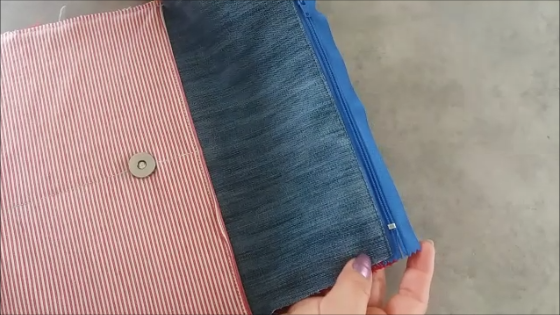 Luego damos la vuelta para colocar el forro, lo hacemos también hacia el borde de la cremallera y derecho con derecho y cosemos recto