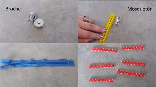 6 trocitos de cinta, cordón etc. de aprox. 6 cm cada uno para hacer las agarraderas donde irán los mosquetones