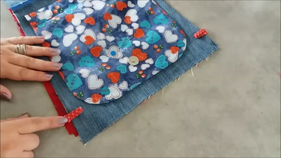 Seguimos cosiendo y a los 3 cm antes de terminar metemos la otra y terminamos de coser, con lo cual nos quedará la solapa puesta de ésta manera: