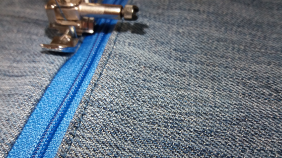 Vamos a poner ahora la cremallera, lo hacemos con el derecho de la cremallera hacia abajo, así: