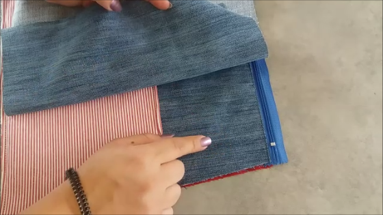 Para el bolsillo frontal: Dos piezas de tela. Yo voy a usar las piernas de un pantalón que transformé (puedes ver ese post aquí: https://goo.gl/CGEX1o )