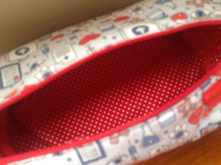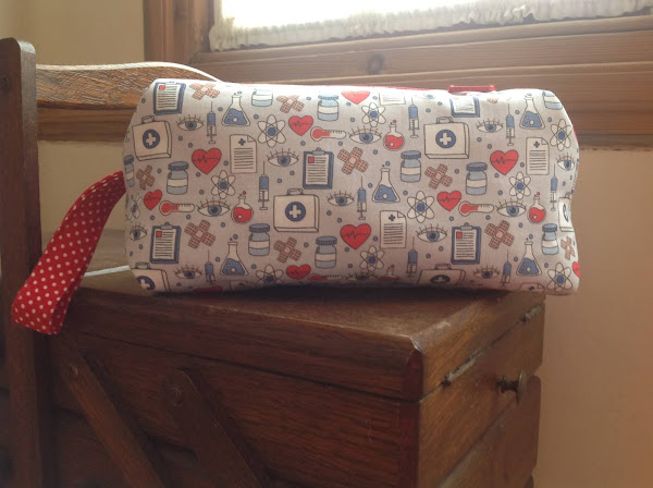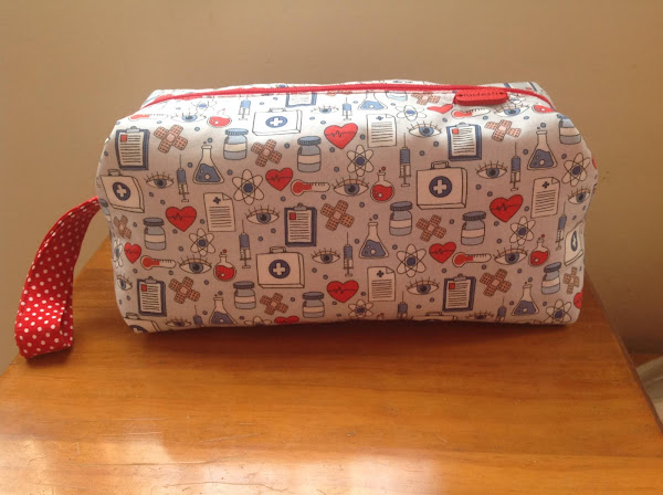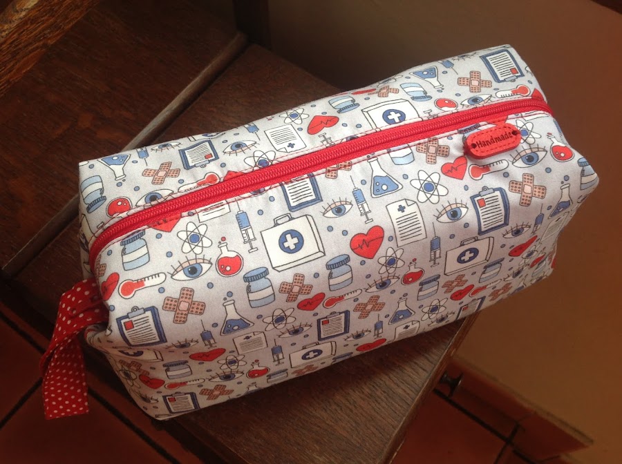 Esta bolsita es para mi sobrina Ana que estudia Enfermería. La tela de patchwork con motivos de la profesión la podéis encontrar en tejidos Trapos, que tienen tienda en Jerez, El Puerto de Santa María y Cádiz.