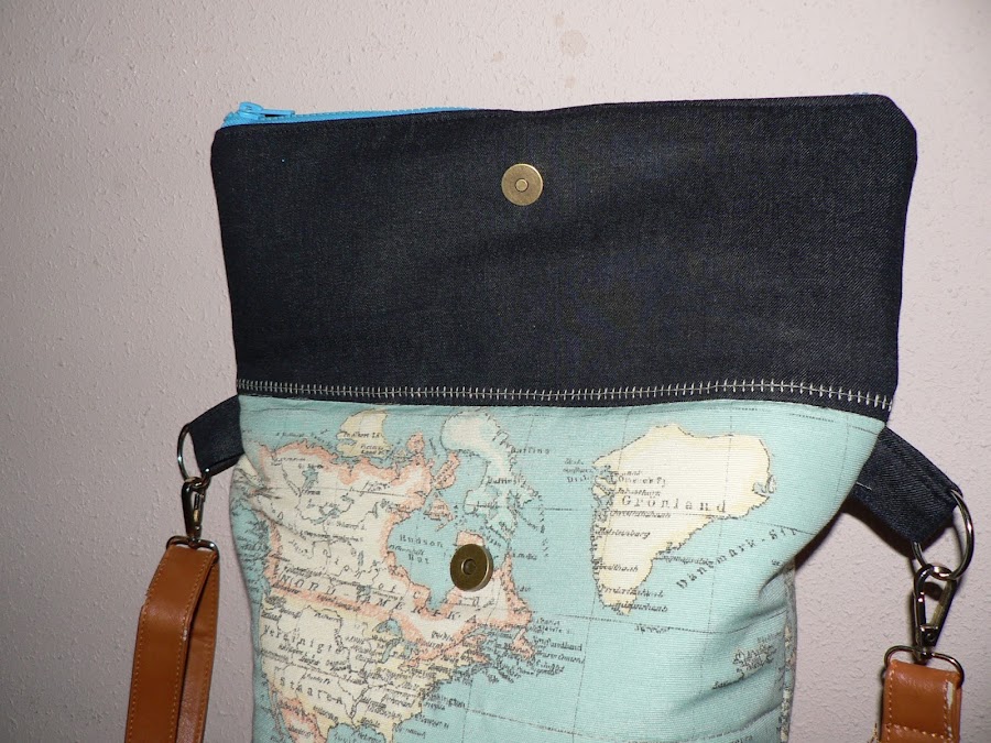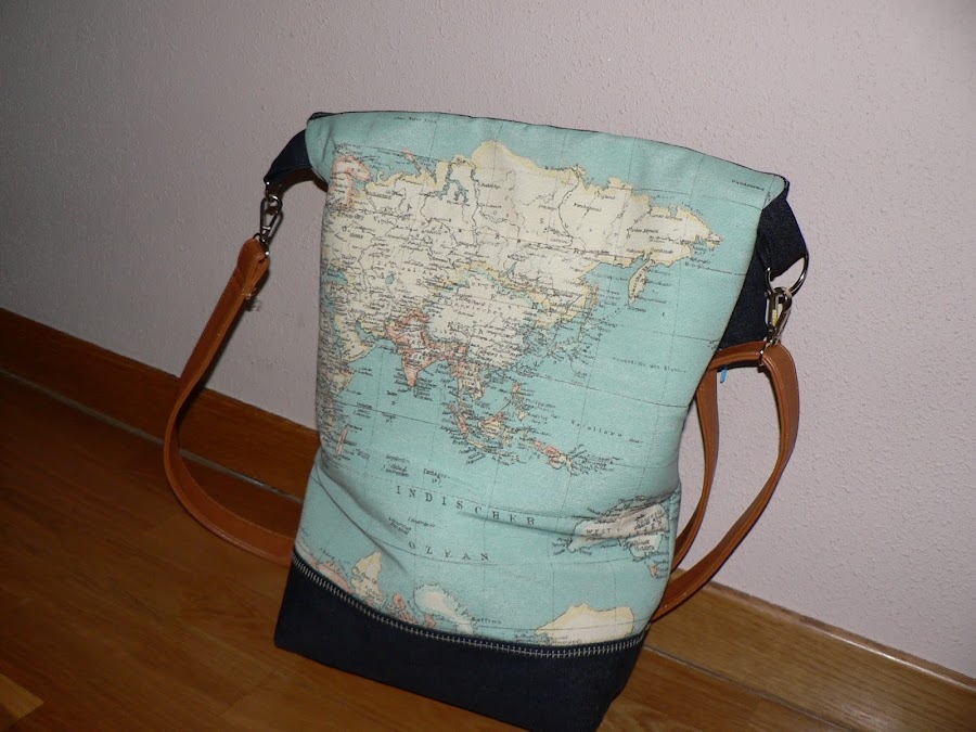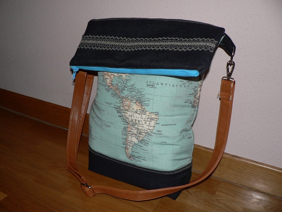 El asa es reciclada de otro bolso. Quiero hacer una pero todavía no se me ha encendido la bombilla. Así que mientras, ésta me vale.