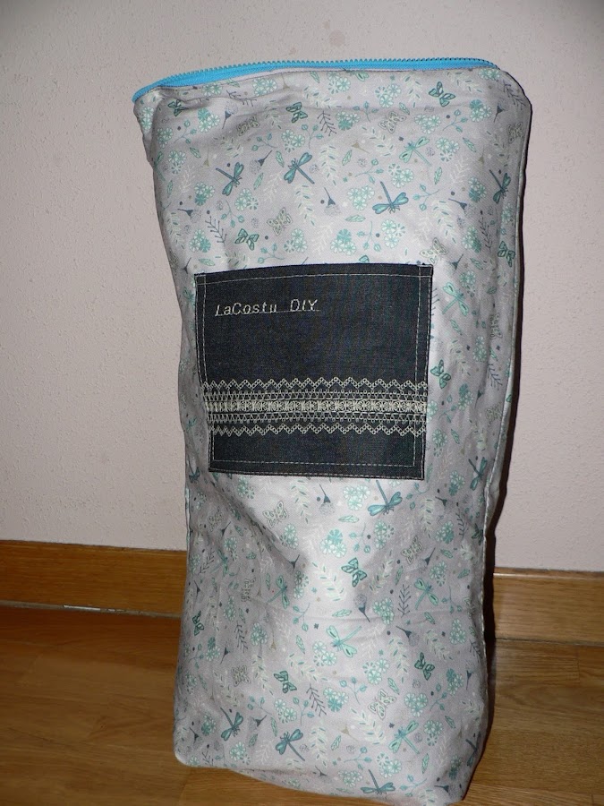 Por dentro puse dos bolsillos sencillos e iguales para meter las llaves o cosas pequeñas. Y aproveché para decorarlos igual que la tapeta. Que no se ve, pero yo sé que lo lleva. Y le bordé lo de "la costu", que algunas amigas costureras me llaman así y me gusta.