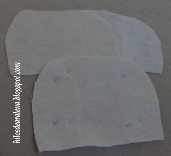Para cada una de las partes (atrás y delante) se corta cada pieza 1, en la tela elegida y paño lenci para darle cuerpo.