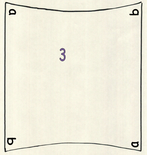 A continuación unimos las piezas preparadas antes, con el lado recto de la base.Unimos los puntos a y b, con a y b de la base.