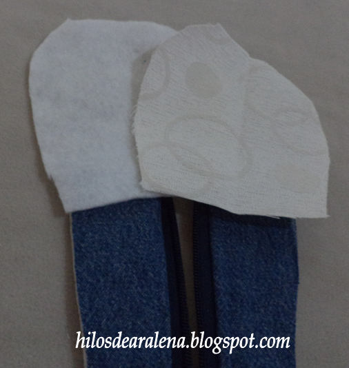 Una vez terminada la pieza 5 preparamos la 4 en tela y paño , para los extremos.