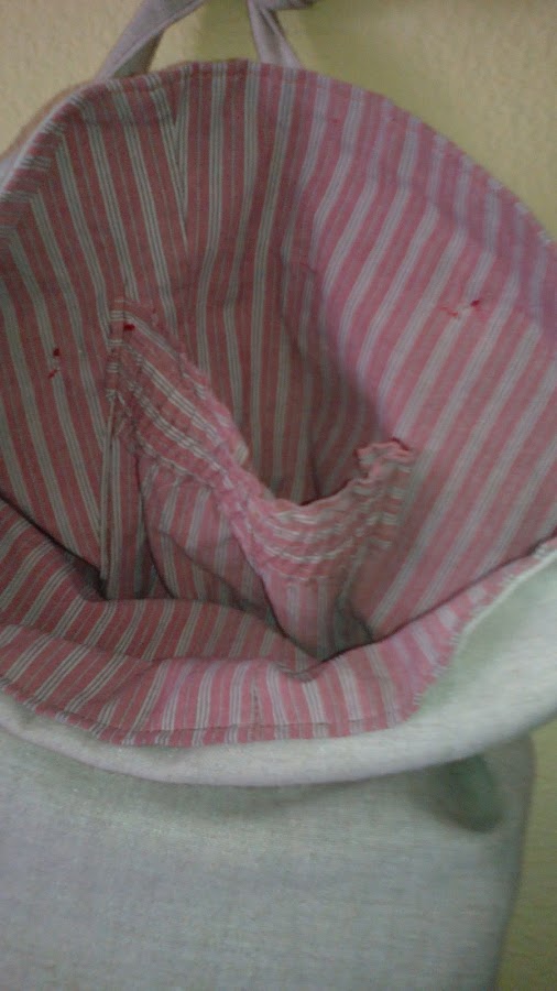 El pantalón que he reciclado, he aprovechado el elástico de la cintura para hacer el bolsillo interior, así lo he encontrado ya rematado en la parte de arriba.