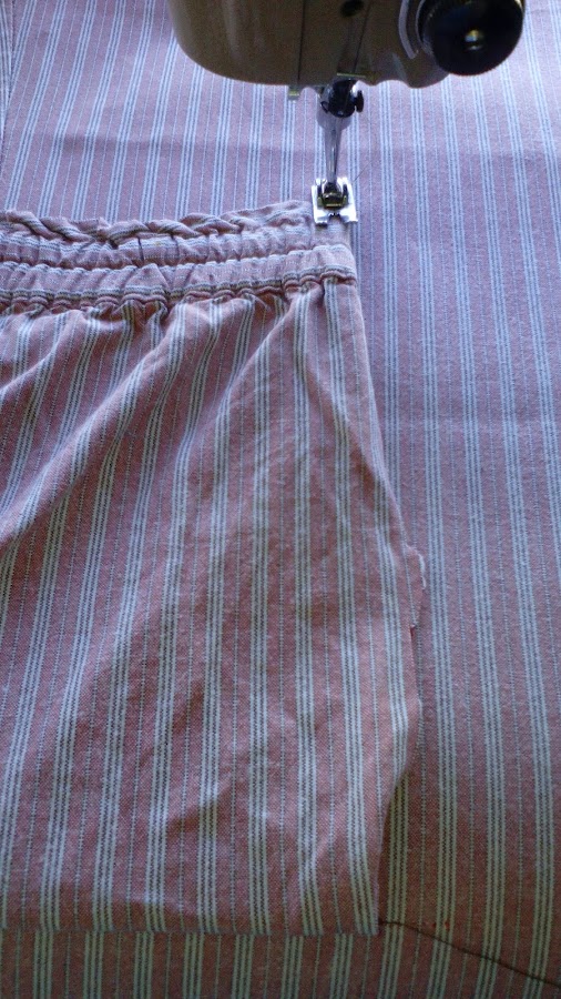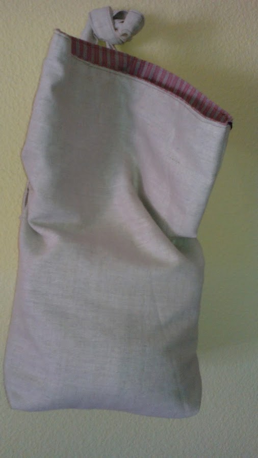 Le he dado forma de saco, en la foto de abajo puedes ver el bolsillo de la cinturilla del pantalón.