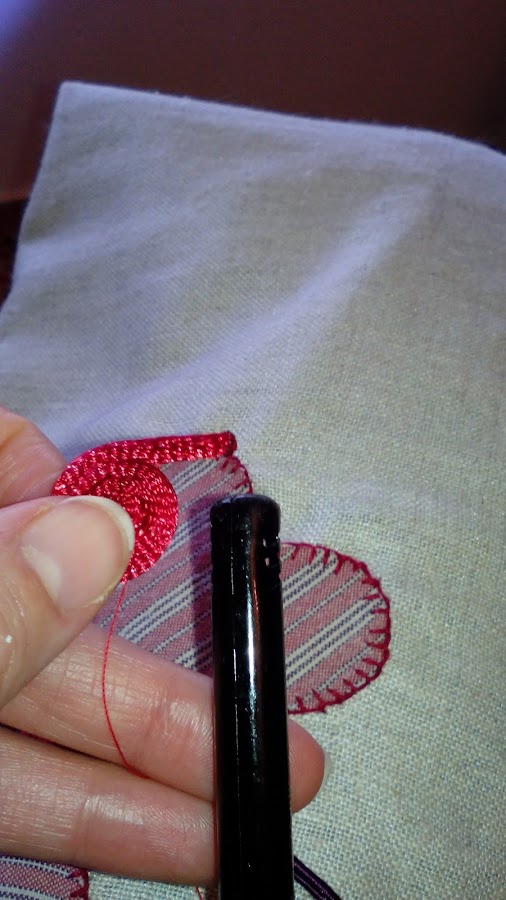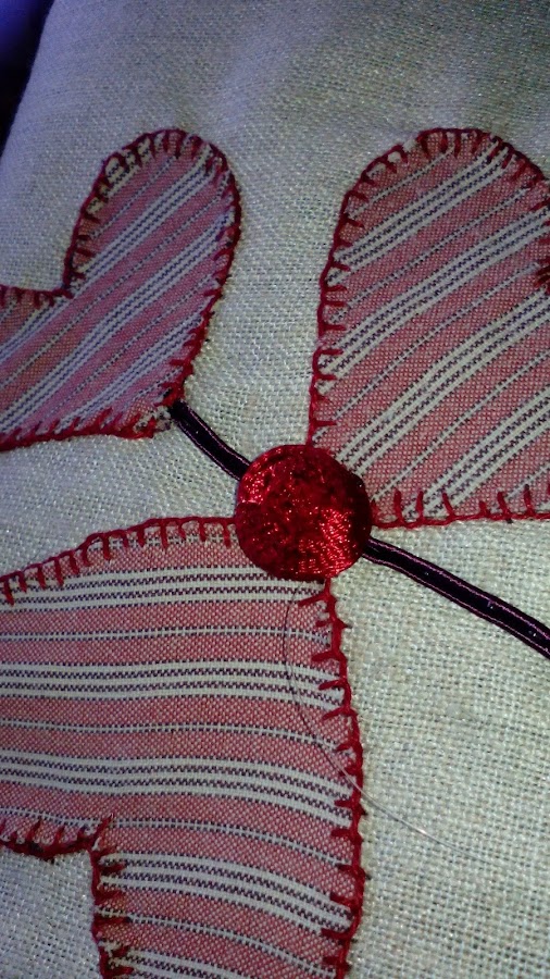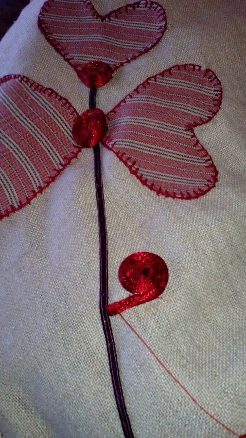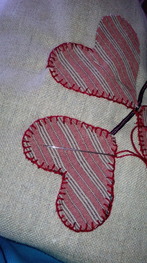 Vamos dando forma a nuestro dibujo, déjate llevar lo que salga......con puntos pequeños e hilo del mismo color, la costura tiene que ser limpia.